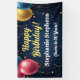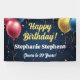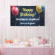 Balloons et confettis décoratifs festifs et colorés, bannière de fête d'anniversaire personnalisable. Ballons roses, jaunes et bleus sur fond bleu marine avec confettis dorés et police de caractères script. Célébrez un 30e, 40e, 50e, 60e, 70e anniversaire ou toute autre fête d'âge ou célébration de bureau amusante pour hommes ou femmes avec cette bannière de fête surprise personnalisable. Célébrez les réalisations et une autre année d'une femme ou d'un homme professionnel.