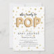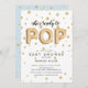 Ballon moderne en feuille d'or en lettrage avec confetti d'or invitations douche bébé pour un garçon prêt à pop douche.
