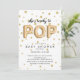Ballon moderne en feuille d'or en lettrage avec confetti d'or invitation pour une douche bébé neutre genre prêt à pop.