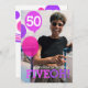 Ballons rose et violet clair double face 50e anniversaire invitation. Bright ballon graphique invitation ajouter la photo de votre fille d'anniversaire et la personnaliser avec vos propres détails. Design unique par Sarah Trett.