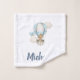 Une mignonne invitation au baby shower comprend une montgolfière avec un ours en peluche, un oiseau et des nuages.
