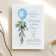 Eucalyptus Vert Bleu Balloon Garçon Invitation d'anniversaire premier anniversaire. Le design présente une élégante disposition de texte de style moderne. Pour effectuer des modifications avancées, sélectionnez l'option "Cliquez pour customiser plus loin" sous Personnaliser ce modèle.