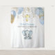 Accueillez vos invités avec cette adorable tenture de baptême avec un éléphant garçon bleu et gris avec des ballons, des confettis et une croix dorée. Facilement personnalisable pour votre événement en cliquant sur "personnaliser".