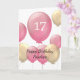 Carte personnalisée rose et or 17ème anniversaire pour elle, qui comporte des ballons roses et or sur le devant de cette carte de dix-septième anniversaire.