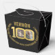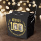 100th birthday black and gold two photos past and present. Great to add a personal touch to your one hundred year old 100th centenarian birthday party favors. Personalize with your birthday boys or girls photos in the 0's of 100 and your own personal message. Other matching items, colors and birthday years are available. Designed by Sarah Trett for www.mylittleeden.com on Zazzle.