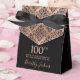 This elegant 100th Birthday Rose Gold Damask Thank You favor box with shimmering rose gold faux foil, the birthday girl's name in a trendy script font, and tied with an elegant black bow would be perfect for your event. It would be great for a candy station, on a thank you gift table, or at each place setting with a favor. Be sure you order enough for all your guests.