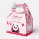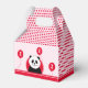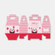 Un panda souriant et des ballons rouges décorent l'avant et l'arrière de cette boîte pour célébrer le premier anniversaire d'un garçon ou d'une fille. Le texte en haut et à l'avant de l'encadré est entièrement modifiable et se lit actuellement "Merci" "POUR AIDER NOUS À CÉLÉBRER" "Jayne's First Birthday". Sur le côté de la boîte, il y a un autre texte modifiable, avec une suggestion de noter le nom du destinataire : "Cette boîte de partie appartient à". La couleur de la boîte arrière - plan est rose et un motif de points rouges complète le design.
