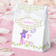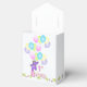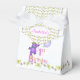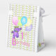1er anniversaire de fête nom personnalisé ballotin de tente avec une princesse en peluche mauve et câlin vêtue d'une belle couronne jaune et des accessoires de fleurs rose, bleu et vert tenant un tas de ballons avec le mot PARTY sur eux. Personnaliser avec le nom de l'enfant le rend spécial. C'est un thème royal amusant pour une princesse spéciale. Design original par Anura Design Studio.