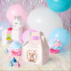 1er Anniversaire de taille moyenne gable boîtes de faveur avec une fille en peluche mignonne, ballons et arche roses roses roses. Conception sympa pour le premier anniversaire ou n'importe quel anniversaire d'une petite fille en rose et beige. Vous pouvez choisir parmi 3 tailles de ces ballotins gables. Personnaliser facilement le texte - Kate Eden Art