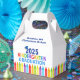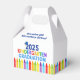 Ce ballotin de la fête de remise des diplômes customisé en 2025 présente un casquette cool au-dessus de l'écriture colorée et une rangée de crayons en arc-en-ciel. Joli jardin d'enfants design d'études supérieures en couleurs amusantes pour la dernière journée de l'école primaire. Félicitations à nos jeunes diplômés !