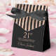 This elegant 21st Birthday Rose Gold Striped Thank You favor box with shimmering rose gold faux foil, the birthday girl's name in a trendy script font, and tied with an elegant black bow would be perfect for your event. It would be great for a candy station, on a thank you gift table, or at each place setting with a favor. Be sure you order enough for all your guests.