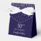 Ce fabuleux ballotin de Merci brillant bleu marine 50e anniversaire avec des diamants scintillants qui s'éteignent, le nom de la fille d'anniversaire dans une police de caractères tendance, et attaché avec un élégant arc blanc serait parfait pour votre événement. Ce serait très bien pour une confiserie, sur une table-cadeau de remerciement, ou à chaque endroit avec un service. Assurez-vous de commander suffisamment pour tous vos invités.
