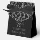 This elegant 70th Birthday Silver Swirls Thank You favor box with shimmering silver faux glitter, the birthday girl's name in a trendy script font, and tied with an beautiful black bow would be perfect for your event. It would be great for a candy station, on a thank you gift table, or at each place setting with a favor. Be sure you order enough for all your guests.