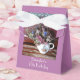 Quelle belle boîte de Fête personnalisée pour un 75e anniversaire ou autre occasion. Sur le devant, Nom et Titre de l'événement en blanc sur un arrière - plan violet. Sur le dos "Merci pour célébrer avec nous" (ou votre texte personnalisé) et Date facultative. Décoré avec notre photo originale d'une théière vintage remplie de jolies fleurs. Un Ballotin d'anniversaire élégant et chic. Tous droits réservés © 2015 Alan & Marcia Socolik.