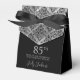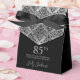 This elegant 85th Birthday silver Damask Thank You favor box with shimmering silver faux foil, the birthday girl's name in a trendy script font, and tied with an elegant black bow would be perfect for your event. It would be great for a candy station, on a thank you gift table, or at each place setting with a favor. Be sure you order enough for all your guests.