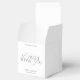 A refined black and white wedding favor box featuring graceful calligraphy paired with a timeless serif font.