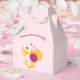 ballotins Heureuses Saintes-Valentin avec l'image d'une abeille rayée rose et blanche. Un morceau de nid d'abeille jaune derrière. Une lettre scellée avec un coeur et un groupe de coeurs flottants font également partie du design.