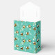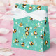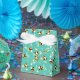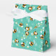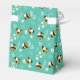 Caixinha de lembrancinhas com ilustração azul de abelhas fofas com flores.