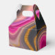 Petit ballotin au design super et abstrait. Les couleurs rose et noire se mélangent et se mélangent dans un mouvement tourbillonnant. Saupoudrer de parties scintillant en faux or entre les couches.