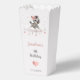 Cute girl baby shower favor box featuring adorable little female zebra wearing a cute pink bow with some love hearts