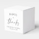 Une boîte chic pour mariage avec "Love + Thanks" dans un script moderne et une typographie élégante, vos noms et date mariage.