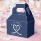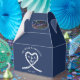 Boîte de faveur de mariage bleu et blanc marine pour marié et marié. Idéal pour un mariage de la Marine (militaire) ou d'une maison de lac. Design dispose d'une corde en forme de coeur avec ancre et initiales de couple au milieu. Personnalisez-le avec vos détails mariages.