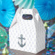 Offrez à vos invités leurs cadeaux de remerciement dans cette jolie boîte avec un fond d'ancre bleu et blanc et un élément d'ancre.