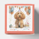 Belle illustration de chiens Goldendoodle portant un casquette d'anniversaire autour d'un gâteau d'anniversaire et de ballons. Parfait pour les amateurs de chiens ou de chiens de famille.