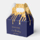 Elégant, classique, glamour et girly pour une fête d'anniversaire de 21ème (ou tout âge). Une couleur arrière - plan marine chic. Sur le devant et le dos : Personnalisez et ajoutez un nom, âge 21 et une date. Le nom est écrit avec un script de style moderne écrit à la main. Décoré avec des gouttes de parties scintillant en faux or, la peinture goutte à goutte. Texte de couleur dorée.