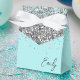 Féminin Aqua Bleu Turquoise Argenté Étincelles Paillettes Monogramme Nom et Initiale Papier Boîtes Cadeaux de Fête Cela fait le parfait 16ème anniversaire, mariage, enterrement de vie de jeune fille, anniversaire de mariage, baby shower ou enterrement de vie de jeune fille cadeau pour quelqu'un qui aime le luxe glamour et les styles chic.