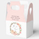 Ballotins mignons pour votre bébé douche fille avec "Merci" et "un petit citrouille doux est en route" en simple typographie grise et un script avec un coeur gonflé, et une couronne d'aquarelle de citrouilles pastel rose, pêche et crème, fleurs et verdure.