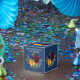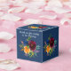 Lumineuse, aquarelle, multicolore, bouquets floraux de chaque côté avec un modèle bleu marine en blanc.