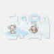 Vous aimerez ce ciel aquarelle et les nuages, les fleurs de tulipes, la souche d'arbre et un joli ours aquarelle teady aux oreilles pois bleues. Parfait pour un baby shower garçon !