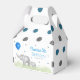 Adorable ballotin de fête avec des points bleus et gris motif, des éléphants aquarelles tenant un ballon bleu et des feuilles de verdure. Parfait pour l'anniversaire des enfants, le baby shower et plus !