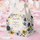 Ce Ballotin Mariage Aquarelle Fleur sauvage Elégant Beige présente de beaux fleurs sauvages en bleu et jaune, typographie moderne, et a un code QR en bas pour votre site mariage. Remplissez-les avec des gâteries pour vos invités mariages, ou laissez-les remplir leur propre boîte à votre bar de soins. Cet article est en coordonnées avec la suite Mariage de Fleur sauvage beige jaune bleu élégant. #wildflorermariage #mariage bleu #mariage jaune #mariage dordmariage #mariage formel #mariage élégant #mariage floral