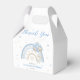 Dites "merci" en style avec cet adorable ballotin baby shower ! Doté d’un arc-en-ciel délicat dans les tons bleu et beige apaisants, avec des nuages doux, c’est une façon parfaite d’envelopper petits cadeaux ou friandises. Une touche de charme pour une fête mémorable !
