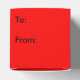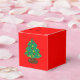 Illustration d'un sapin de Noël entièrement décoré contre un arrière - plan rouge vif. Les mots To From en haut.