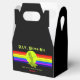 Fun anniversaire design de faveur est parfait pour passer le faire vous-même des kits de slime ou pour transporter la chaux et bonbons maison que vous donnez à vos invités! Le design dispose d'un sol noir. De l'autre côté de la boîte se trouvent les bandes arc-en-ciel. Au centre des bandes arc-en-ciel se trouve un cercle vert néon avec un caractère vert citron. Au-dessus et au-dessous du type slime est un texte personnalisable en vert néon et rouge où vous pouvez ajouter votre propre message et le nom du garçon ou des filles d'anniversaire. La conception se répète à l'envers de la boîte. Des invitations assorties, assiettes, serviettes et affranchissement sont également disponibles.