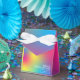 arrosement de mariage holographiquemoderne et élégantarc en cielrose bleu jaune violetmerci de célébrer avec nousboîtes de faveur personnaliséesvibrantdégradémoderne