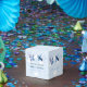 Ce design adorable présente des avions et des illustrations de nuages avec des étoiles de parties scintillant en faux argent.
