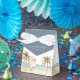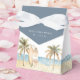 Vous serez séduits par ce ballotin de baby shower côtier personnalisé de Redwood & Vine Design Co.. Le design présente des palmiers doucement peints, une rive sablonneuse, des vagues de l'océan et une paire de planches de surf, surmontés d'un rabat bleu poussiéreux et attachés avec un ruban blanc immaculé. Idéales pour les douches tropicales, surfs ou sur la plage, ces boîtes sont parfaites pour tenir des bonbons, des biscuits ou de petits cadeaux et s'associer magnifiquement à la suite de papeterie côtière correspondante pour un look cohésif.