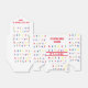 Le design présente un arrière - plan de l'alphabet en papier pochoir brillant et coloré, tout comme celui des magnets du réfrigérateur que nous connaissons tous ! L'expression "IT'S A GIRL !" est affichée en lettres rouges au milieu de l'avant du design. Top flap dit à tout le monde quand Baby est dû. Une fois ouvert, le nom du bébé est révélé dans la même lettre rouge. Parfait pour un Baby shower à thème ABC ! Conçu pour être coordonné avec la "collection de Baby showers ABC".