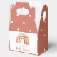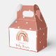 Cette adorable Ballotin de baby shower présente un style boho tendance et un script manuscrit tendance. Un arc-en-ciel peint en terre cuite et neutre sur un simple arrière - plan blanc.
