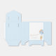 Adorable ballotin de baby shower bleu clair avec un joli dessin d'aquarelle d'un ours en peluche tenant des ballons bleus, gris et bronzés.