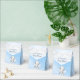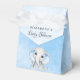 Pour un baby shower élégant, glamour et girly célébrant un bébé garçon. Arrière - plan bleu clair. Décoré avec un mignon bébé elepahant. Avec le texte : Baby shower avec un script de style moderne en lettres de couleur gris foncé. Modèle pour le nom de la mère.