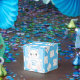 L'adorable kitty cat baby shower design est parfait pour un amoureux des animaux avec un bébé garçon en route en bleu!