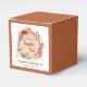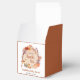 Un beau baby shower-party neutre pour les femmes privilégie des boîtes avec une aquarelle d'une couronne d'arbre ornée de petits animaux de bois (hibou, cerf, écureuil et renard), des fleurs d'automne et des citrouilles oranges. "A Sweet Little Merci" et "A Sweet Little Citrouille Is On His Way" sont écrits dans une simple typographie et un script en terre cuite. Précisez le sexe du bébé si vous le souhaitez (p. ex. "est en route").