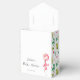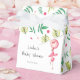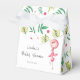 Ballotin de baby shower flamand tropical aux couleurs rose et verte. Utilisez-le dans votre baby shower pour inclure avec vos faveurs. Personnalisez le texte avec vos propres informations. Illustré et dessiné par Patricia Alvarez.