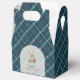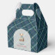 Bienvenue à votre petite avec un charme intemporel. Ce ballotin baby shower est orné d'un ours en peluche doux avec un ruban bleu, encadré dans un style arc classique. L'arrière - plan présente un plaid bleu marine traditionnel inspiré par le style Ralph Lauren, avec de subtiles touches de vert citron et de rose pour une touche fraîche et moderne.