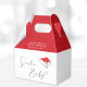 Belle boîte rouge et blanc pour votre Noël de fête de baby shower faveurs avec "Père Noël Baby" et "A Merry Little Merci" dans un script élégant avec un swash coeur et une aquarelle illustration d'un casquette du Père Noël rouge. Personnalisez avec le nom de la mère et la date de la douche dans la typographie blanche moderne.